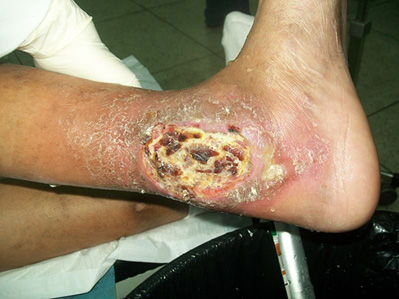 - Wikimedia commons; File: Pie diabetic. jpg Category: Diabetic foot ulcer; Bobjgalindo Chronic left ankle diabetic ulcer 3 June 2010