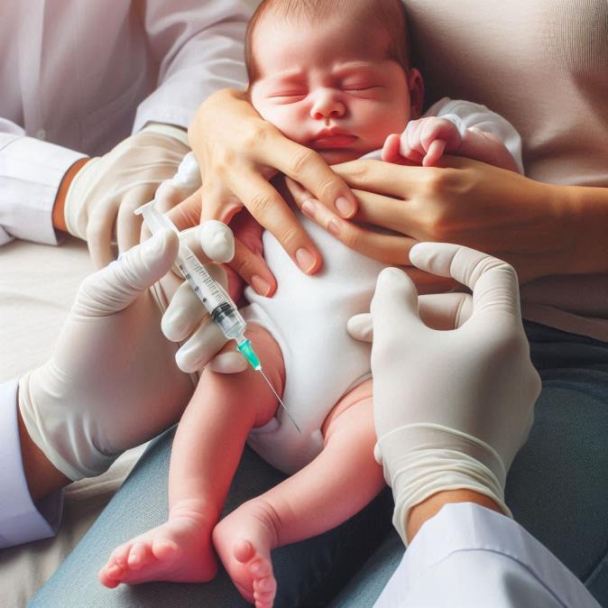 into the thigh of the newborn shortly after birth protects the infant from such a potential lethal event.